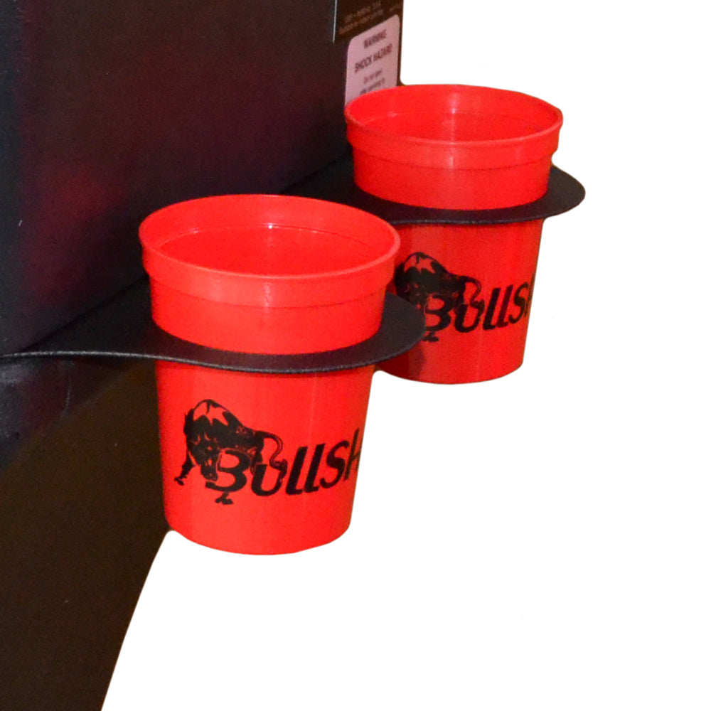 This heavy duty, black powder coated, metal bracket holds two custom BullShooter cups and attaches to any Spider 360 Home Series dartboard or any of the BullShooter commercial dartboards of the same design.